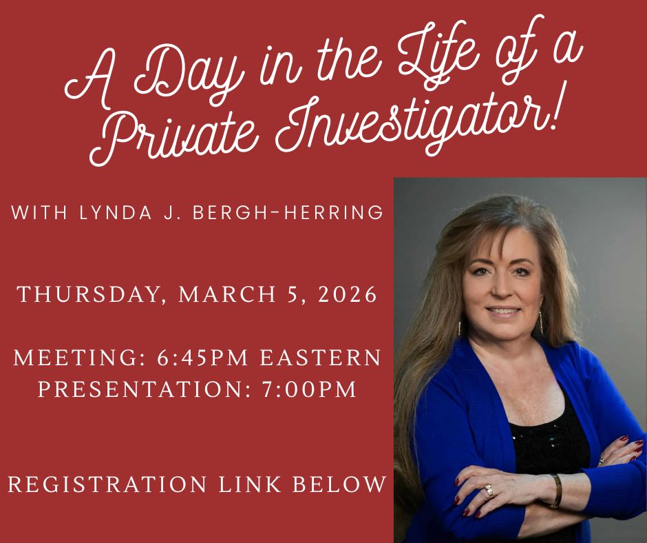 Join Upstate SC Chapter and Lynda J. Bergh-Herring for a fascinating hour all about private investigating and the life of an investigator!